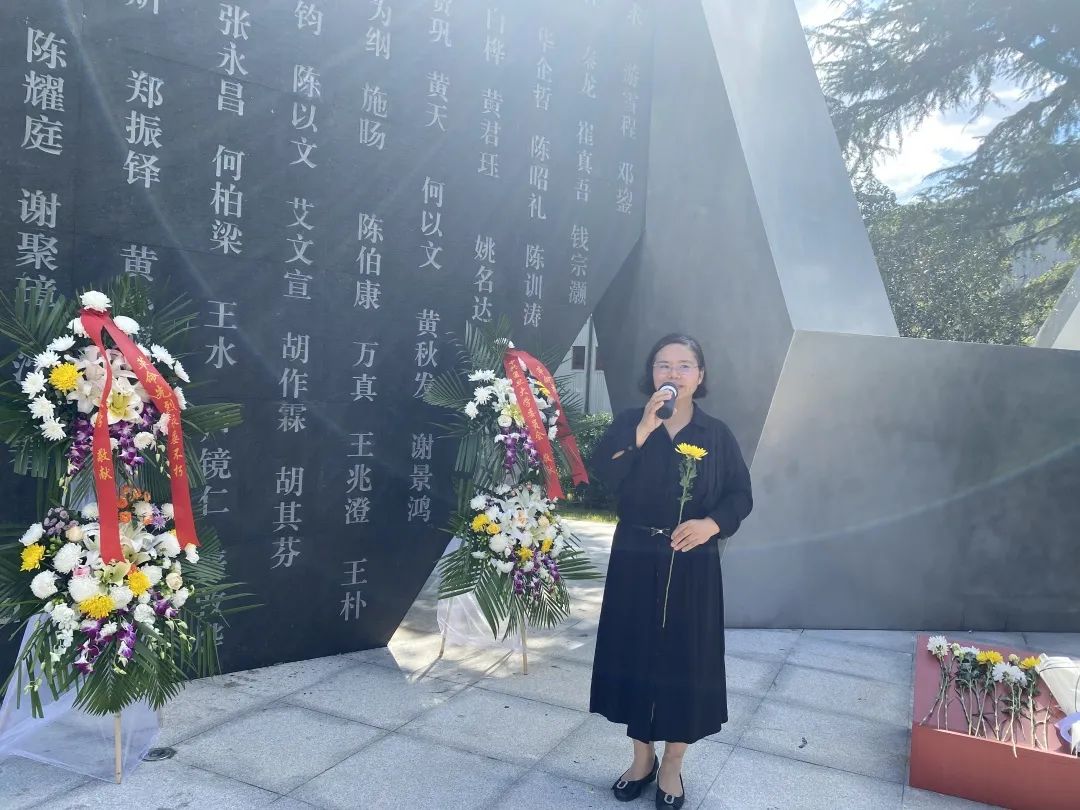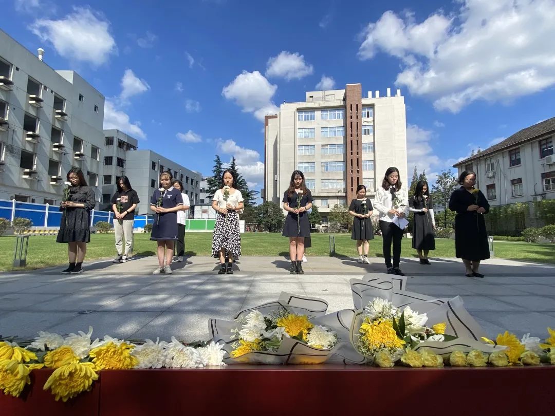 在场的师生党员在烈士广场的雕塑前静默、三鞠躬后,排队献花。他们表示,作为新时代的青年学人,要铭记并弘扬烈士为国家、为人民无私奉献的精神。俄文系校友、2018级本科生党支部书记、本科生辅导员贾怡锐表示:“高汝河烈士是我们俄文系的老师,同时也是我们学生工作的前辈,他的故事时刻激励着我们。作为党支部书记、辅导员,我们要坚持立德树人的根本任务,引导学生在一段段感人至深的故事中铭记英烈顽强奋斗的精神,继承先辈遗志,传承复旦红色基因,这是对历史上为党、为国家、为人民献出生命的所有英灵的最好告慰。