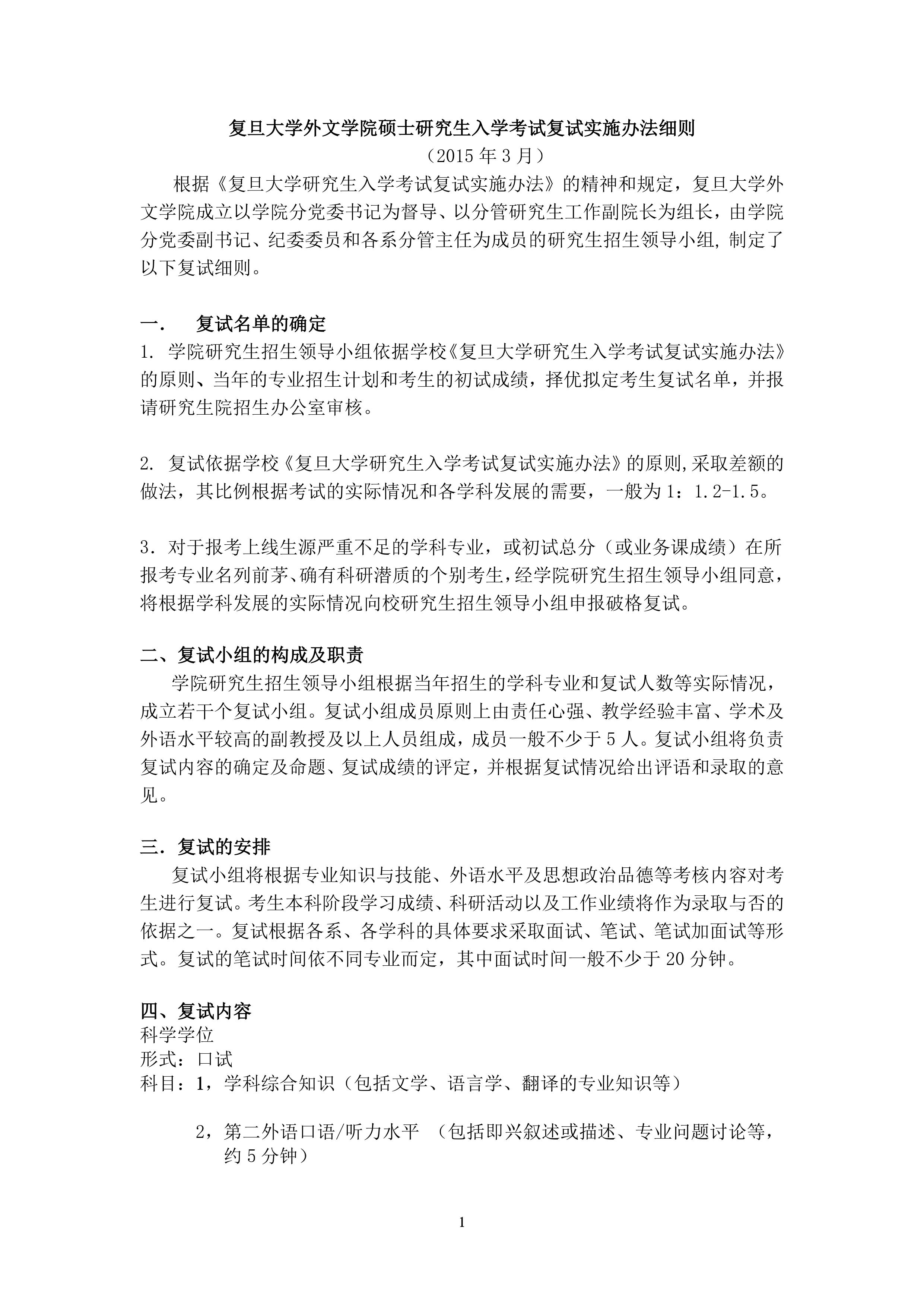 赢博首页_赢博(中国),外文学院2015年硕士研究生入学考试复试实施办法