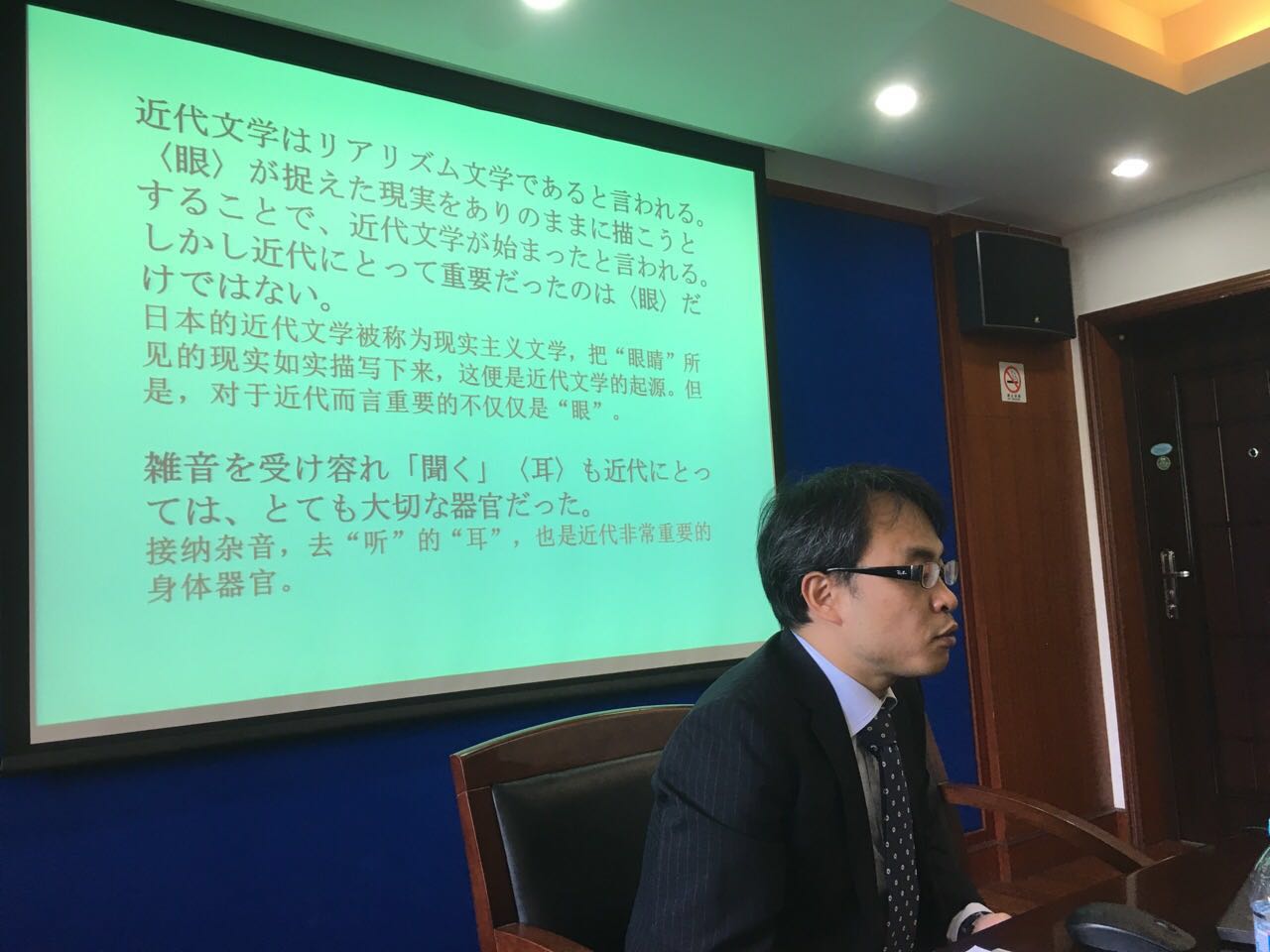 上午的讲座主题为《“聆听”日本文化》,主要内容为关注文学作品中的声音,甚至是“杂音”,学会“听”文本。下午讲座的主题为《挑战翻译的文学作品》,主要探讨文学作品在翻译时遇到的困难、通过译本对作品产生新的认识、文本的“可译”与“不可译”等问题,引发了参加讲座的老师与同学们的热烈讨论。