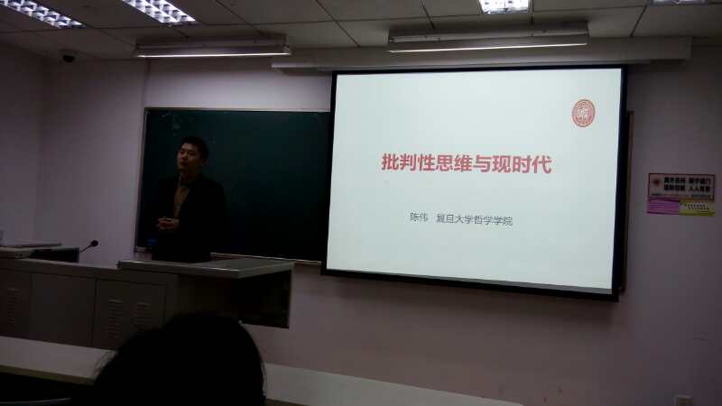 2017年 5月2日上午,赢博首页_赢博(中国),哲学系陈伟副教授应邀为外文学院翻译系学生带来一场题为“批判性思维与现时代”的讲座。讲座由外文学院陶友兰教授主持。