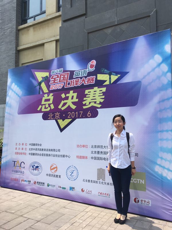 第六届全国口译大赛(英语)于2017年6月17日上午在北京师范大学拉开序幕,外文学院14级翻译系的李闻昱同学在为期两天的无差别激烈角逐(本科与硕士混赛)中,一路过关斩将,表现突出,最终荣获全国交传总决赛一等奖。