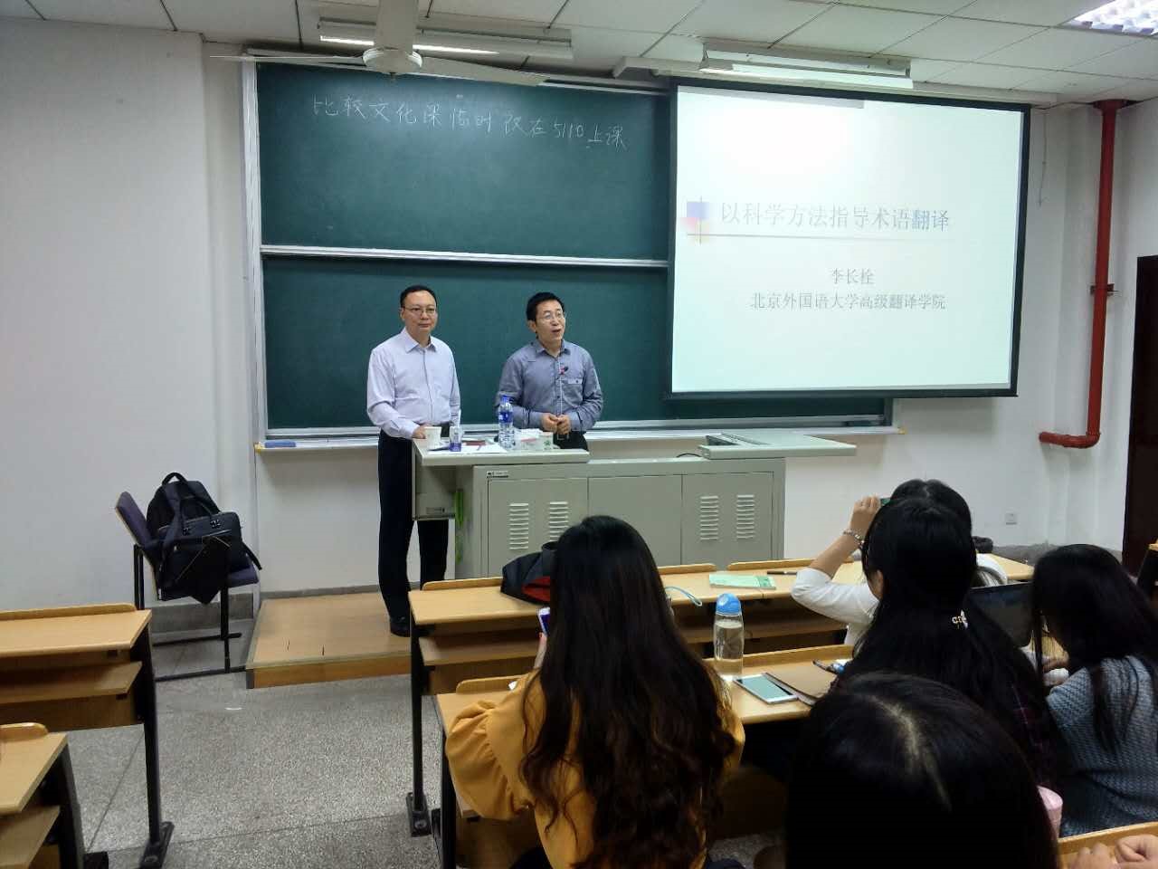 2017年10月11日上午,由赢博首页_赢博(中国),外文学院主办的系列讲座之第二场在第五教学楼正式开讲啦!现场气氛热烈,座无虚席,许多对翻译研究感兴趣的小伙伴们都早早慕名前来,以期感受北外高翻名师李长栓老师的风采。李老师继昨晚所作的题为“翻译是发现和再现真相的过程”的讲演后,又紧接着奉献了一场紧扣“以科学方法指导术语翻译”为主题的演说。本场讲座由王炎强老师担任主持。