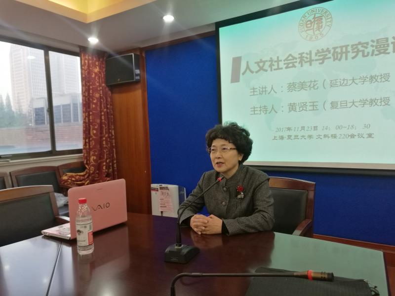 蔡美花教授以“人文科学社会研究漫谈”为主题开展讲座。讲座由韩文系主任黄贤玉教授主持。