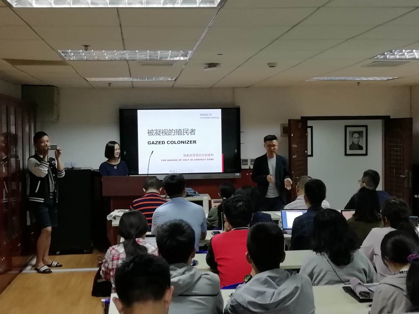 2019年5月20日晚,外文学院青联会春季讲座在文科楼举行,本次讲座由青年研究员李双志老师主持,主讲人王怡博士作了题为“被凝视的殖民者——接触地带里的自我构建”(Gazed Colonizer – The Making of Self in Contact Zone)的讲座。