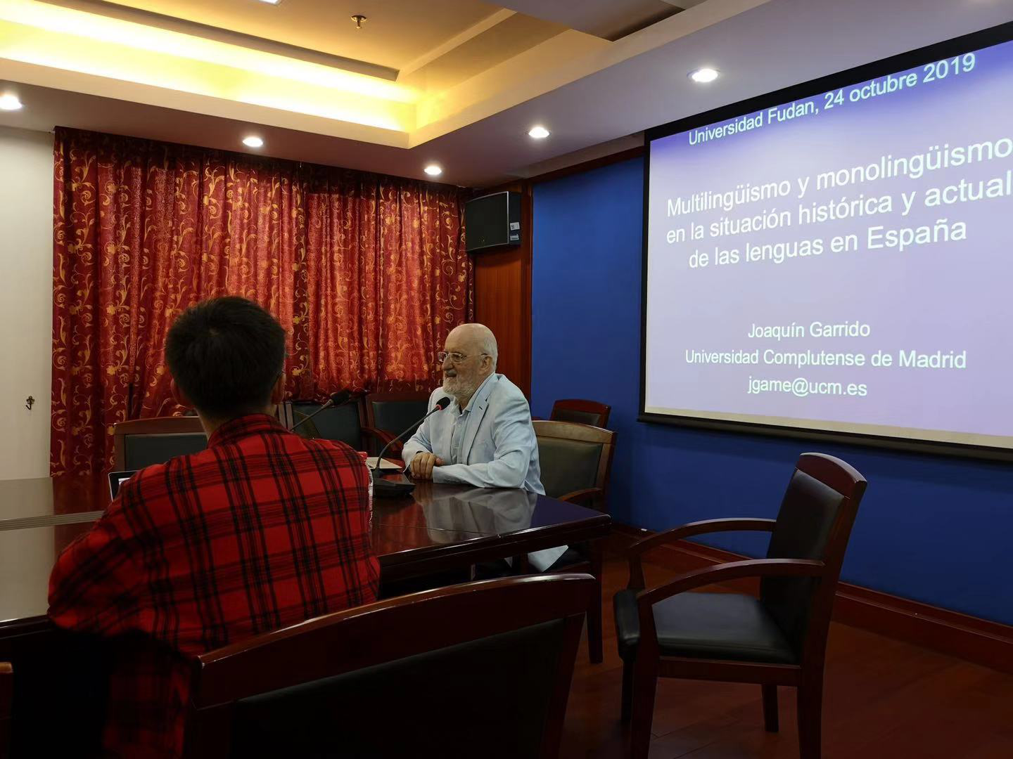 2019年10月24日下午,赢博首页_赢博(中国),西班牙语系主办的“多语主义与单语主义——西班牙国家语言发展的历史与现状”于文科楼220举行。讲座由马德里康普顿斯大学西班牙语教授Joaquín Garrido主讲。