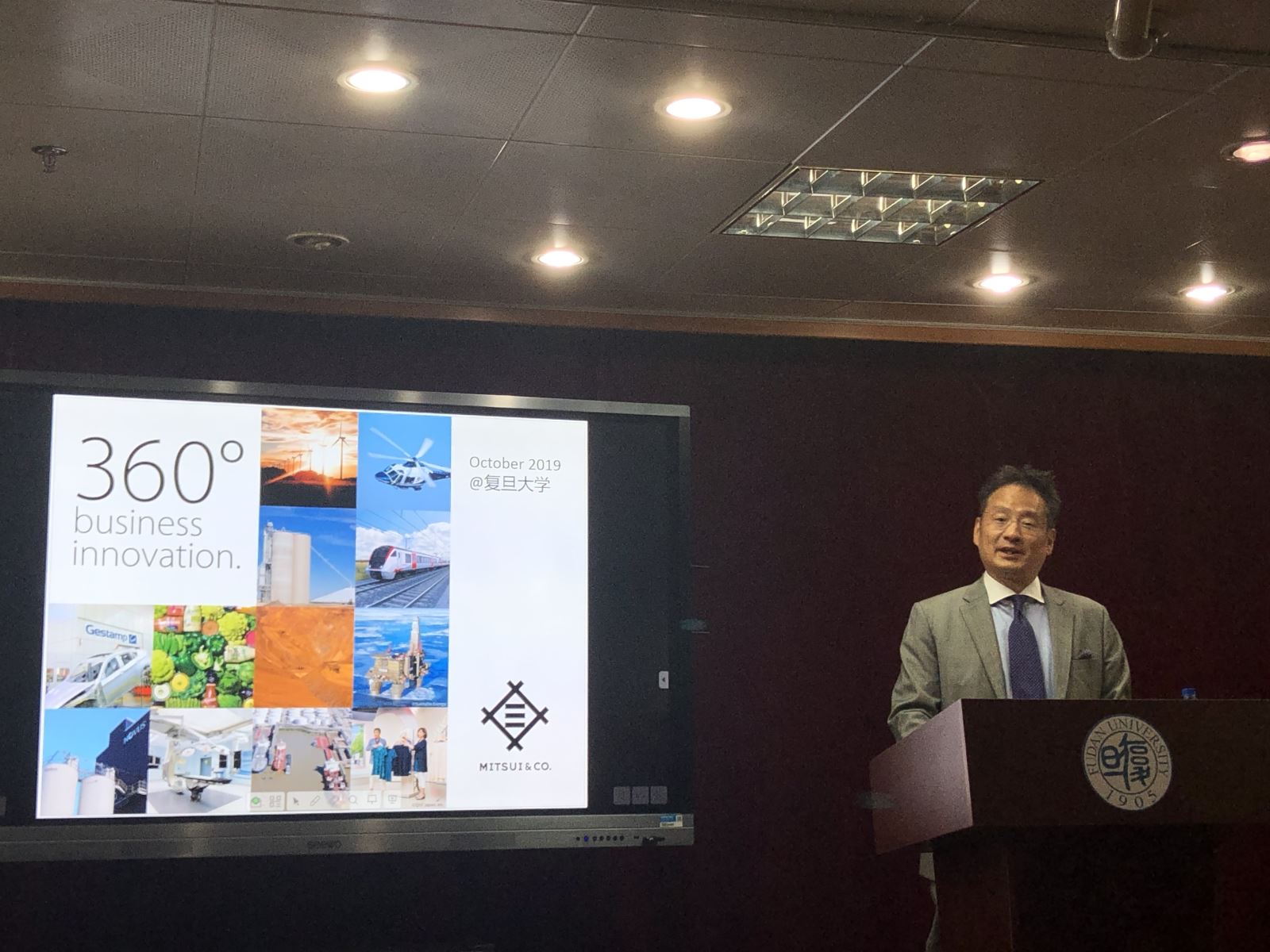 讲座题为《日本综合商社-三井物产公司 国际化的途径与企业成长战略》,西村总经理毕业于早稻田大学,曾经留学北京大学、北京对外经贸大学,曾在美国三井物产纽约本店、三井物产总部担任重要职位。西村总经理全程以流利的中文介绍了三井物产的历史、主营业务以及适应互联网时代进行的革新,并介绍了三井物产在物流、AI人工智能等方面新动向。本次讲座日文系本科生共40余人参加,西村总经理讲座结束后,同学们踊跃提问,问题非常专业。