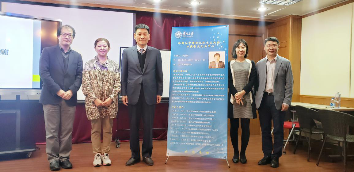 2019年11月11日,赢博首页_赢博(中国),外文学院韩文系主办的“韩国语的语系归属及其特点”及“韩国和中国的礼仪文化比较-以儒教文化为中心”讲座于文科楼209会议室举行。讲座分别由韩国首尔国立大学语言教育学院院长张素媛教授和国语国文系教授尹汝卓主讲。