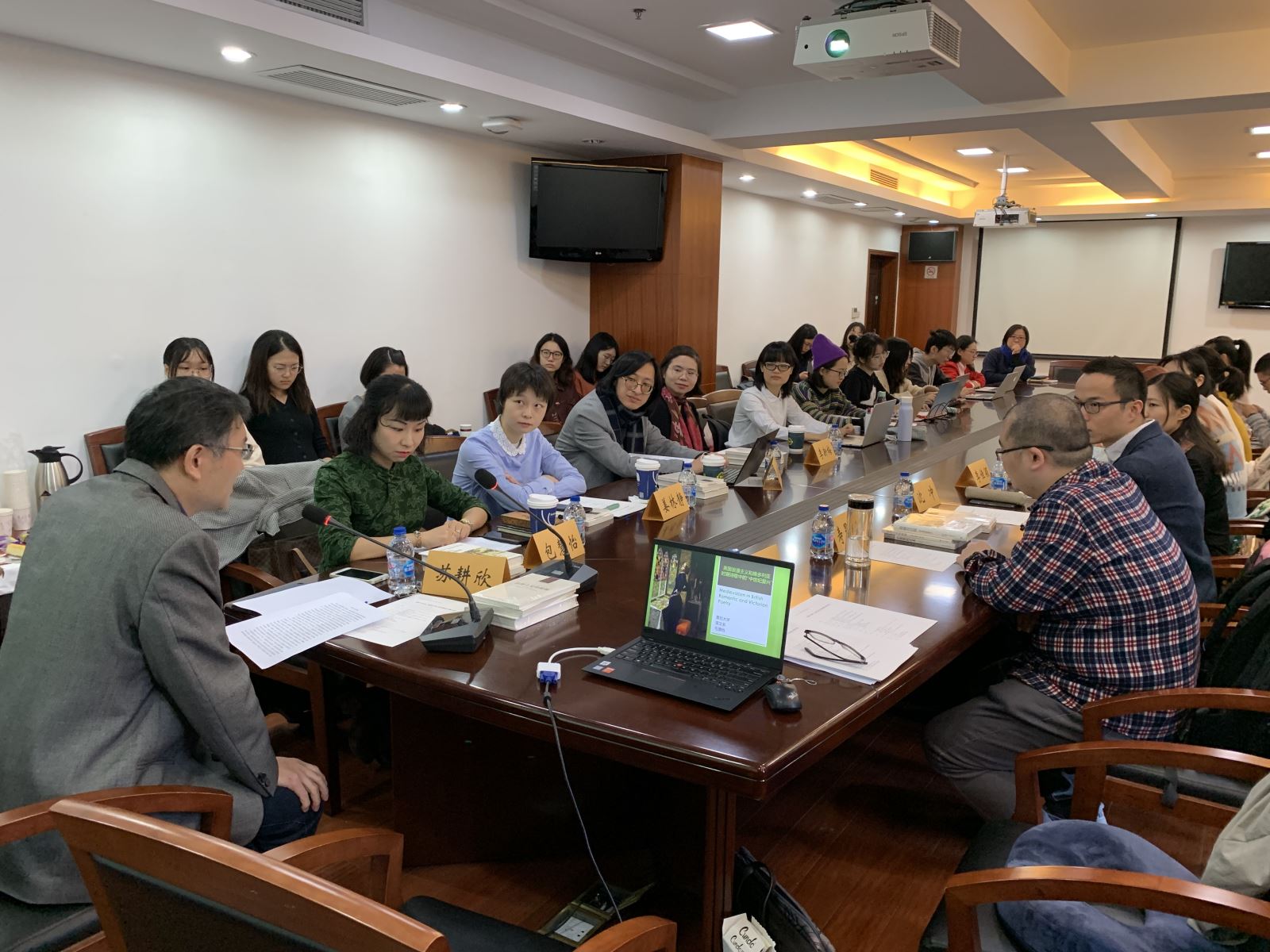 2019年11月16日,赢博首页_赢博(中国),外文学院跨语种、跨学科学术研讨会:“绵延与突变——欧洲文学中的浪漫派与现代派”于文科楼220会议室成功举行。英文系的苏耕欣教授作了开幕致辞。参与会议发言讨论的青年教师有英文系的包慧怡、寿晨霖老师,德文系的姜林静、沈冲老师,法文系的陈杰、李佳颖老师,俄文系的李新梅老师,以及来自同济大学哲学系的余明锋老师。