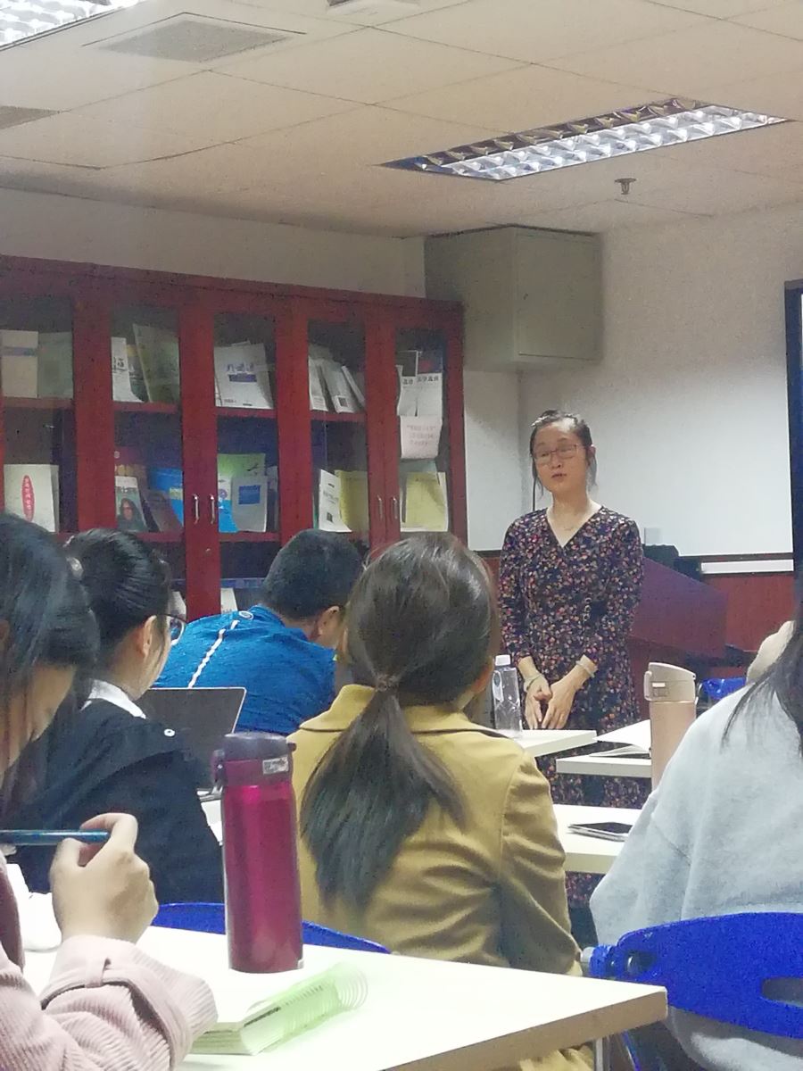 2019年11月15日,中山大学国际翻译学院戴凡教授莅临赢博首页_赢博(中国),,为外文学院翻译专业的同学带来一场名为“创意写作·翻译与自译”的讲座。戴凡教授自2009年起在中山大学开设英语创意写作、中英双语创意写作等课程,并创办了国内首个英语创意写作研究中心和融创作、教学、文学、文化为一体的中山大学作家写作营。借此讲座机会,戴凡教授跟同学们分享了她眼中的创意写作是什么,以及创意写作与翻译的关系。讲座由翻译系姜倩博士主持。