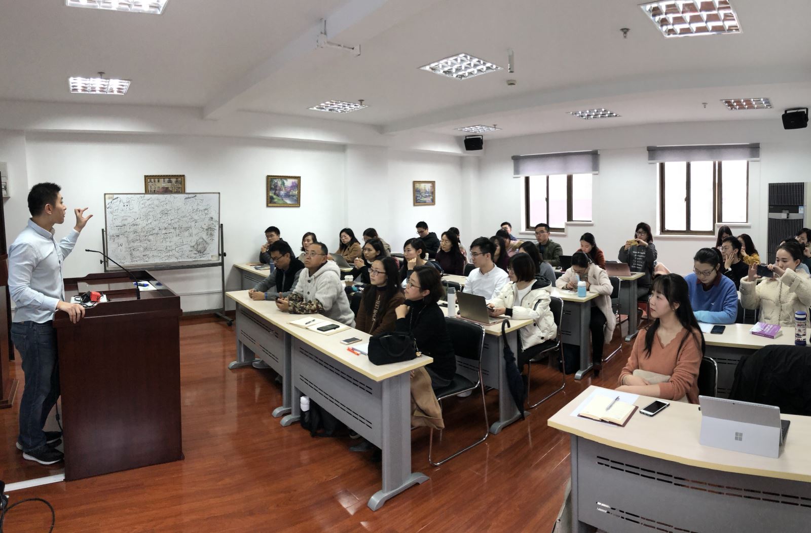 2019年12月24日14:00至15:30,儿童语言习得专家刘礼泉博士应邀来我院开展讲座。本场讲座由英文系李昕博士主持,不仅吸引了来自本院和中文系的本科生、研究生和教师参加,也吸引了来自上海外国语大学和上海财经大学等其他高校的师生前来交流,全场座无虚席。