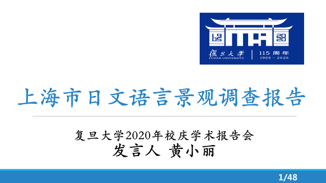 黄小丽老师以“上海市日文语言景观调查报告”为题,首先回顾了西方语言学界、日本语言学界和中国语言学界的语言景观研究状况,其次介绍了国家语委科研规划项目“上海市语言景观中的日文使用状况实证研究”的主要研究成果。黄老师指出,西方视域下的语言景观研究重视语言权势及政治制度对语言景观的影响,关注语言景观所反映的少数族裔语言活力问题,这与日本语言学界重视文字书写体系及现实关切的研究范式具有很大的差异。同时,通过调查概要及相关数据的解读,介绍了上海市日文语言景观的分布状况、文字书写状况、标牌所属业态、标牌表现形式等信息,强调构建以汉字为中心的语言景观研究范式的重要性。