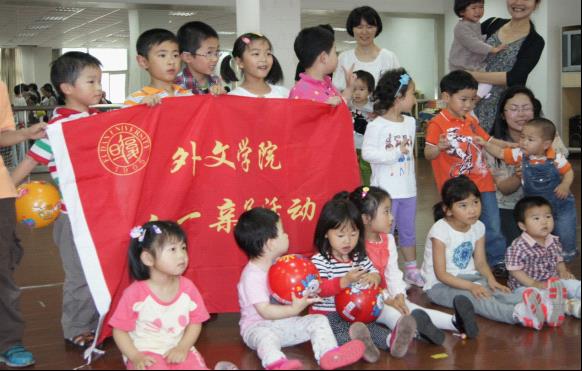 2014年6月1日是外文学院儿童子弟及家长快乐幸福的一天。来自16个家庭的18位小朋友在家长陪同下参加了学院工会组织的“庆六一亲子活动”。学院工会主席曾建斌老师全程呵护,学院党委书记李倩老师也到现场亲切慰问。院工会副主席刘亦春老师在几位研究生助手的帮助下为列席家庭举行了足球射门、猜字、投篮、夹球赛跑、套瓶等游戏活动。足球射门、猜字、投篮由家长和儿童合作进行,夹球赛跑由小朋友自行组合完成,套瓶游戏发挥小朋友的独立比赛能力,单独完成。大家表现踊跃,气氛热烈。家长耐心启发、辅导,孩子专心倾听、配合。大家比得认真,赛得热烈,在欢乐气氛中度过了一个亲密温馨的儿童节。工会还为每位到场儿童准备了一份精美大礼包,小朋友们既加深了亲情,体验了竞争合作的愉悦,又收获了大集体的关爱。