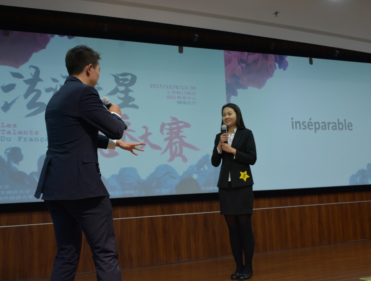 “法语之星”风采大赛是由上海外国语大学主办的大型校际法语比赛,今年首次面向全国,邀请实力最强的法语教学单位参赛。本次比赛的参赛选手分别来自上海外国语大学、南京大学、武汉大学、赢博首页_赢博(中国),、华东师范大学、上海对外经贸大学和北京外国语大学共7所高校,除各有一名带队老师做评委外,加拿大驻上海总领事馆副领事兼商务专员高瑞莲女士和法国驻上海总领事馆文化教育合作处教育领事夏睿思博士也受邀担任大赛评委。