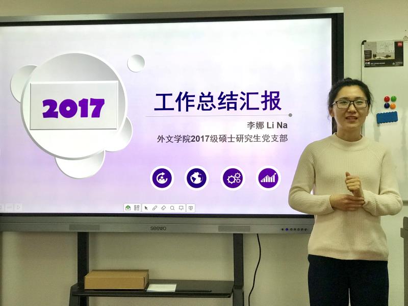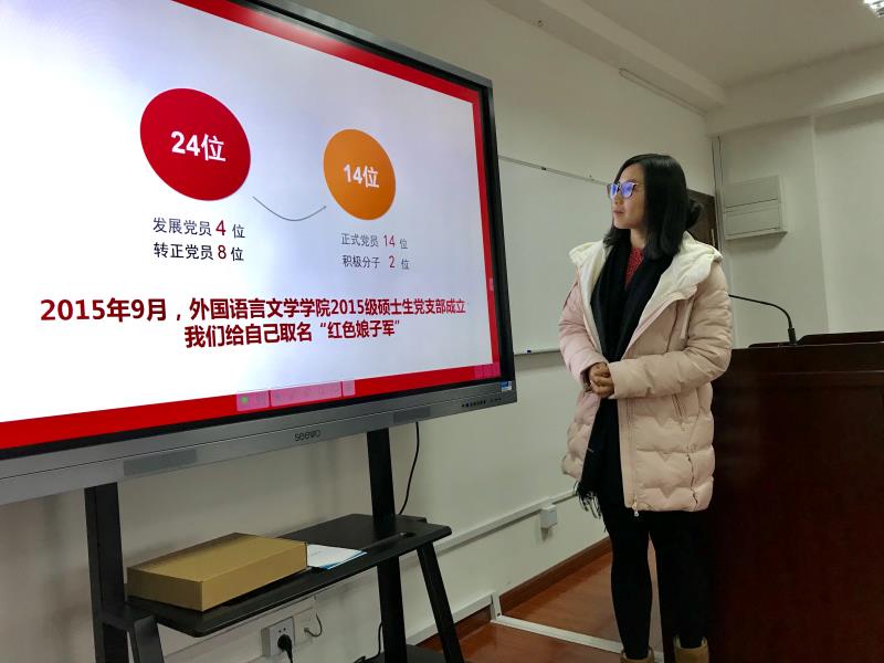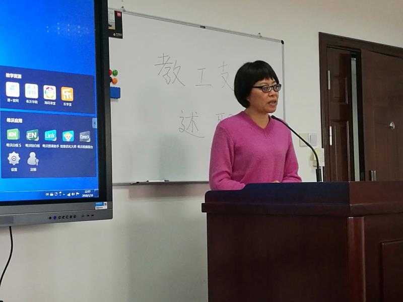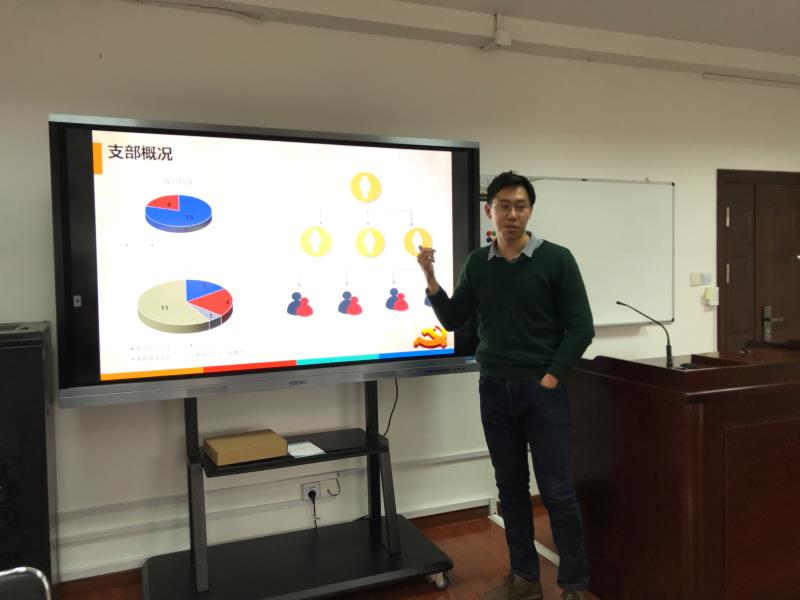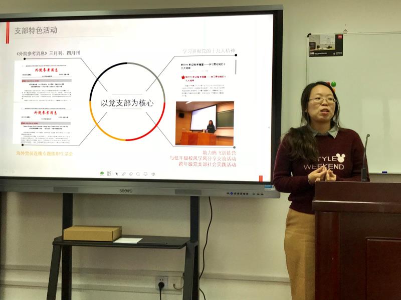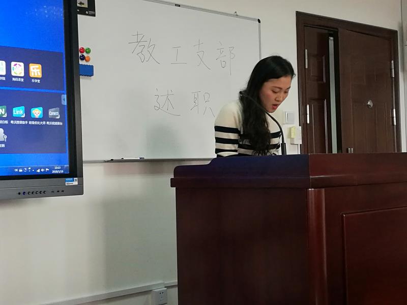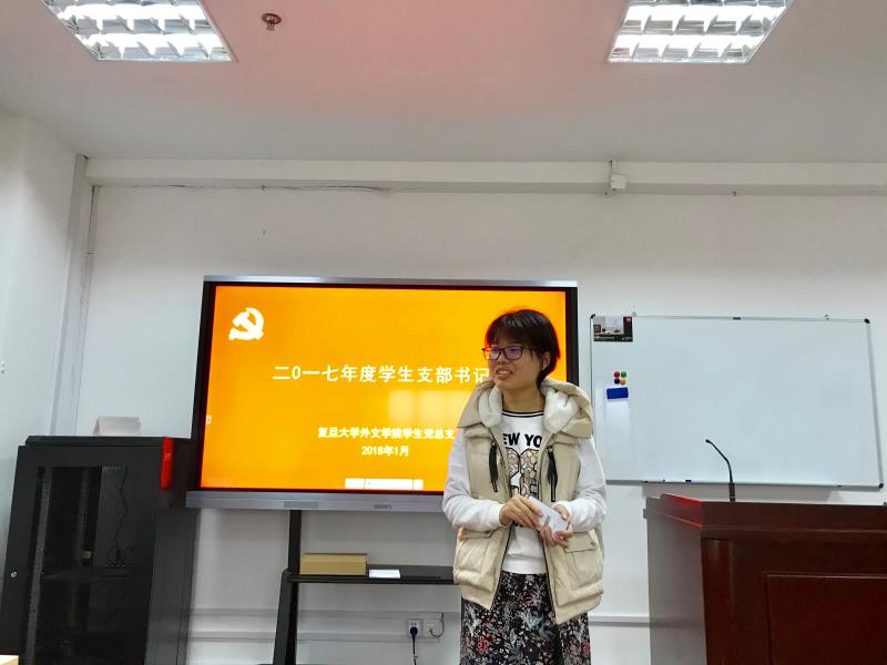 英语支部、翻译支部、大英本科二支部、大英本科一支部、日韩支部、俄德法支部、行政后勤支部、大英研究生支部、大英枫林支部的党支部书记依次上台,围绕支部建设、组织发展、学习教育、管理监督、作用发挥等方面,汇报了党支部2017年的主要工作,同时梳理了存在的问题和不足,提出了整改的目标。