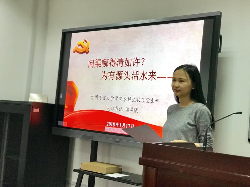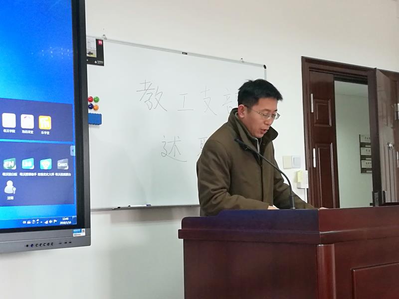 1月17日下午,外文学院学生党总支在文科楼543会议室举行学生党支部书记述职会,学院党委副书记、学生党总支书记赵昕,学生党总支副书记王亚鹏、茅盾,各学生党支部书记、全体辅导员参加述职会。2016级硕士生支部、2017级硕士生支部、2015级硕士生支部、博士生支部、本科生联合支部、本科生毕业班支部的支部书记分别上台述职,学生党总支副书记王亚鹏对各学生党支部的工作进行了点评。