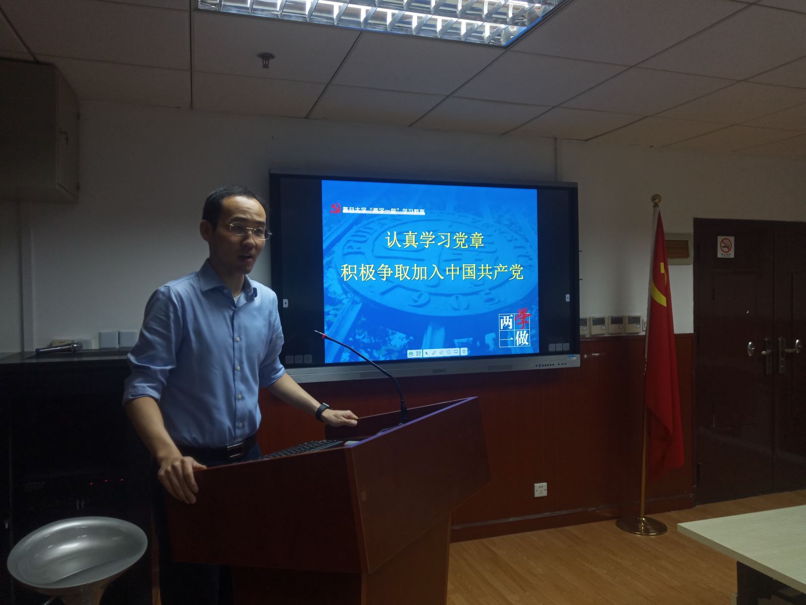 茅盾作了党章学习专题讲座。他通过“我对党的基本知识了解多少”、“我为什么要申请加入党组织”、“加入党组织,我准备好了么”三个主题,结合党史和党的十九大精神,对党章的主要内容进行了系统而又生动的介绍,并勉励学员们通过参加党章学习培训,认真学习理论知识、努力提高思想觉悟、不断坚定理想信念,以积极的行动向党组织不断靠拢,为成长为一名合格的、优秀的共产党员而不懈奋斗。
