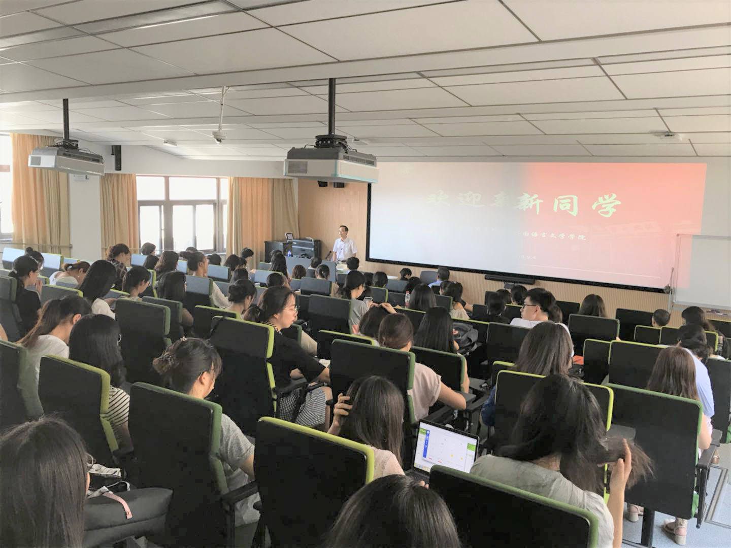 2018年9月4日下午,外文学院在六教6412教室举行2018级研究生新生见面会。外文学院院长曲卫国、党委副书记赵昕,导师代表褚孝泉教授、陶友兰教授、段枫副教授、赵世锋副教授,研究生教务员和新生辅导员出席,2018级全体硕士、博士新生参加,见面会由研工组长王亚鹏老师主持。