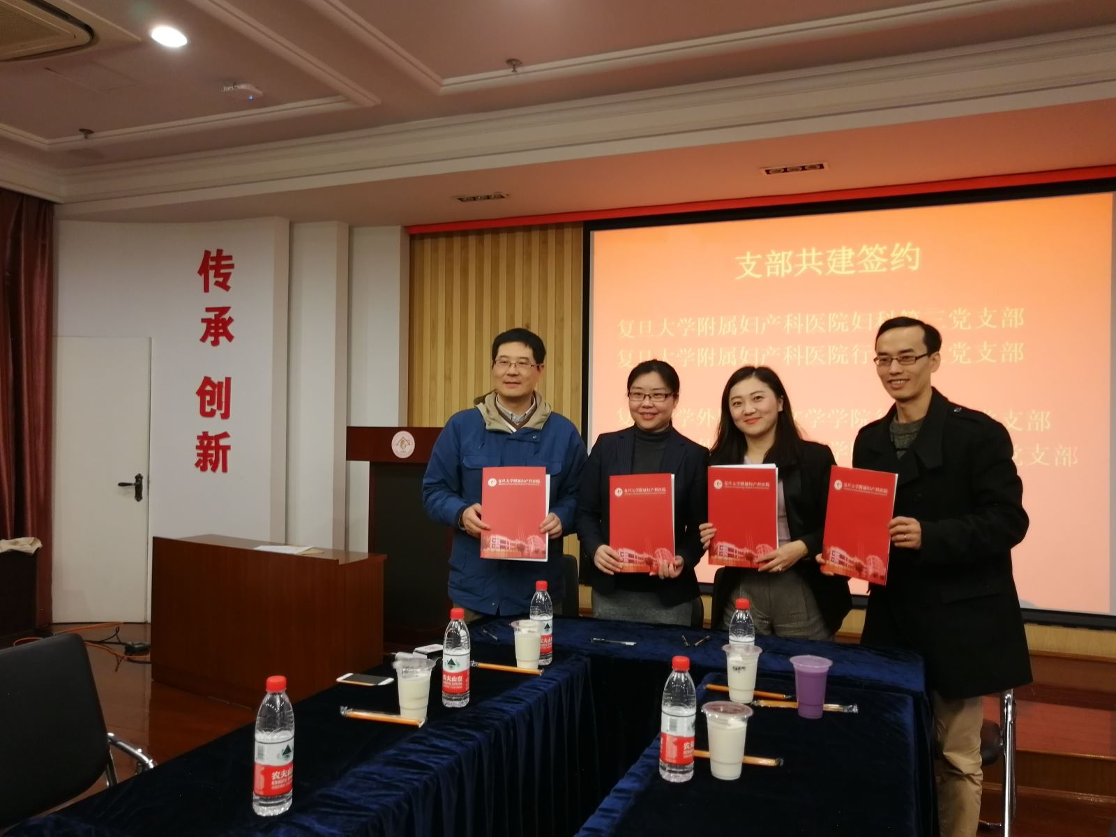 附属妇产科医院妇科第三党支部、行政第三党支部举行支部与外文学院行政后勤党支部、本科生联合党支部签署了共建协议。