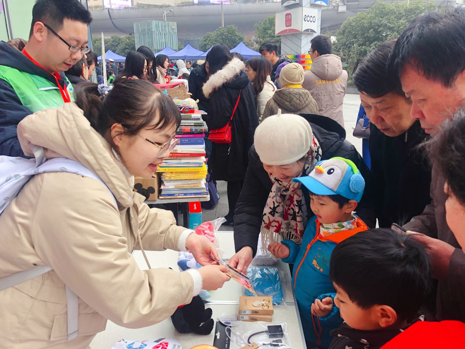 为深入贯彻落实党的十九大精神,进一步传承和弘扬雷锋精神,3月5日,外文学院2018级本科生团支部和2018级硕士生党支部组织学生志愿者,参加五角场街道 “不忘初心志愿行”——“3.5”学雷锋主题志愿服务日公益义卖活动。