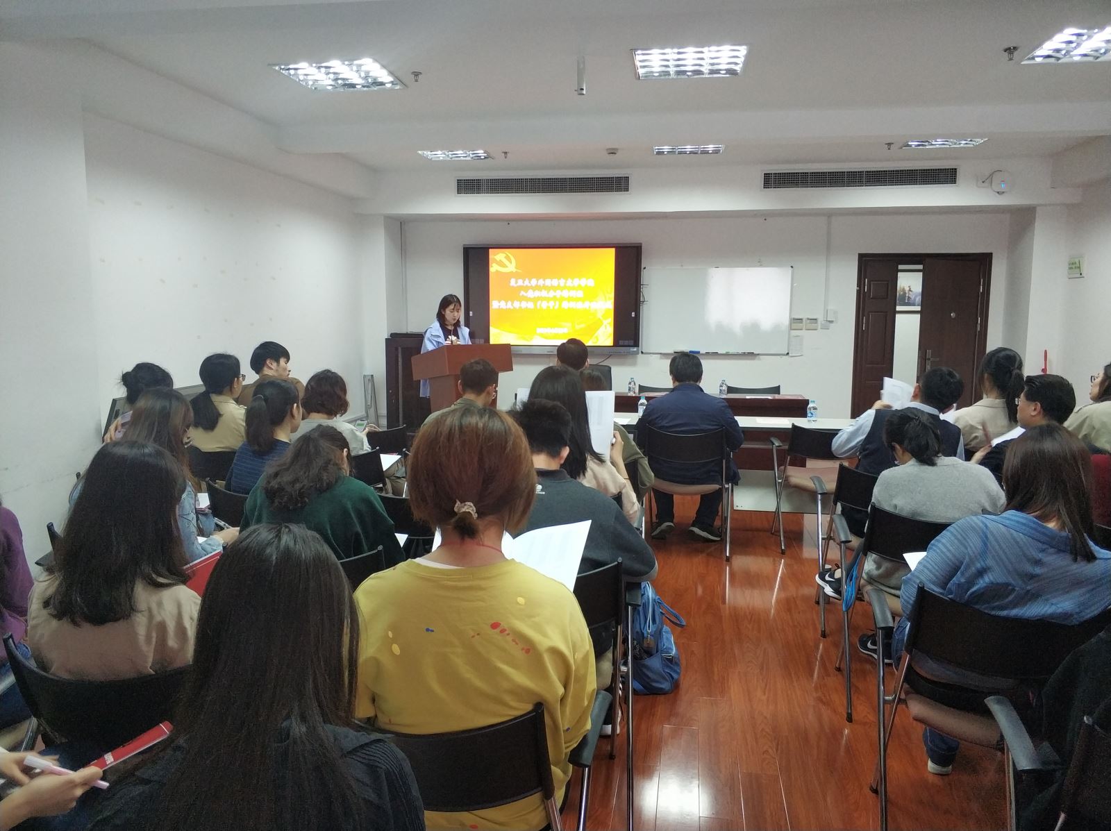 随后,学生党总支副书记、学工组长 茅盾进行了主题为“加入中国共产党你需要知道的——发展党员流程”的报告。他介绍了发展党员的流程和党支部骨干必须完成的各项工作,要求积极分子端正入党动机,严肃对待入党流程,并要求党支部骨干用更严格的标准对待每一名积极分子入党的各项事务。