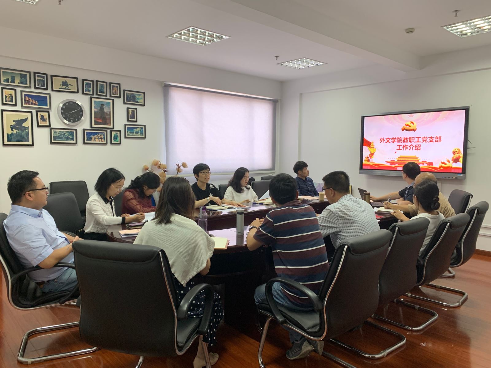 2019年9月29日下午,外文学院在文科楼524会议室召开新一届教工党支部书记工作会议暨党支部书记培训会。学院党委书记罗英华、党委副书记曾建彬、赵昕和新一届教工党支部书记参加会议。