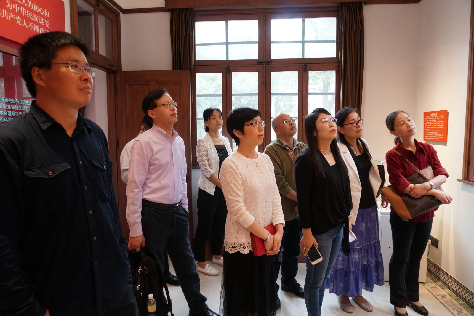 2019年10月12日上午,外文学院党政领导班子、分党委委员集体前往陈望道旧居、《共产党宣言》展示馆参观学习。跟随讲解员的生动介绍,大家通过丰富的图片、文字、实物展品和多媒体,深入了解了《共产党宣言》的诞生和翻译过程,深刻感受了上海和复旦的红色基因与传承,深情回顾了陈望道老校长的追求真理、奉献教育的伟大一生。