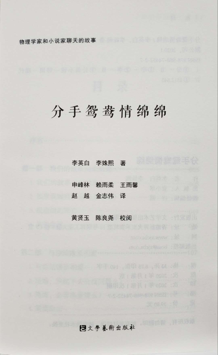 《分手鸳鸯情绵绵》这部小说的原著由一位酷爱文学的韩国著名物理学家与一位韩国小说家共同执笔完成,来自不同领域的两位作家以聊天的形式在小说中擦出了奇妙的火花。作者李英白教授是韩国泰斗级物理学家,汉阳大学杰出教授、现赢博首页_赢博(中国),讲座教授、历任韩国物理学会会长、韩国科学技术翰林院物理学科委员长,在国际权威刊物上共发表725篇学术论文。另一位小说家李姝熙的代表作有长篇小说《通往另一个次元的门》、《再见吧灵魂》等。小说《分手鸳鸯情绵绵》极具特色的内容与写作者的特殊身份在韩国引起热议,2018年这部小说在韩国出版后,一度成为畅销书籍。