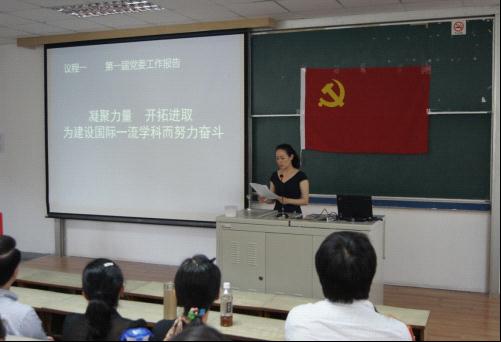 院党委书记李倩同志代表上届党委作了题为“凝聚力量、开拓进取,为建设国际一流学科而努力奋斗”的工作报告,报告全面回顾了学院过去六年的工作和所取得的成绩,分析了学院面临的竞争形势和工作目标,对今后四年基层党组织建设和学科发展提出了任务和要求。