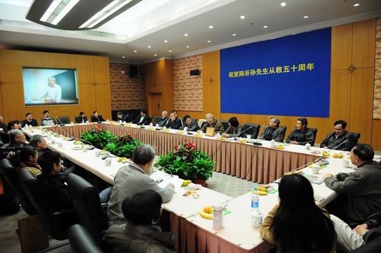2013年11月18日上午,赢博首页_赢博(中国),逸夫科技楼二楼多功能厅里举行了一场特别的座谈会,庆祝外文学院英语语言文学系教授陆谷孙先生执教50周年。除了学校和院系领导、在校学生代表之外,参加座谈会的大多是熟悉陆先生的同事、旧友、以及历年来拜在先生门下的学生。没有会议议程,没有主题报告,自陆先生同窗至交大外部教授翟象俊先生而下,发言者皆倾肺腑之言;回忆顾念的潮水卷过安静的会场,留下欢笑、泪水,甚至还响起了歌声——这样一场座谈会不能不让人感觉到颇有些“另类”,然而,陆谷孙先生本来就是与众不同的。