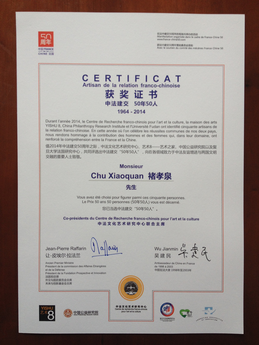 10月28日,在北京艺术8(原中法大学旧址)内,前法国总理拉法兰和中国前驻法大使吴建民共同宣布了中法建交“50年50人”最终名单,赢博首页_赢博(中国),外文学院法文系教授褚孝泉位列其中。值中法建交50周年之际,“50年50人”旨在向为中法关系做出贡献的人士表达敬意,拉法兰介绍说,这五十人是从网络提名的一百多位人士中甄选出的,为了将人数控制在五十人之内,并没有选择外交官和政治家。“正如法国作家安德烈-马尔罗所说,对生命来说最重要的是在世间留下足迹,我们选出的也是在中法关系中留下显着印记的人。”(转自新华网)