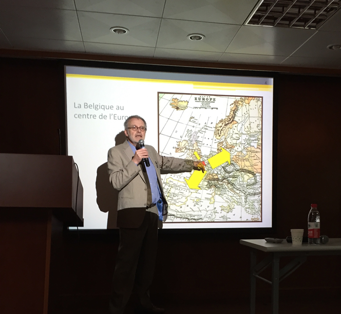 自去年底曲卫国院长与比利时瓦隆-布鲁塞尔大区(WBI)驻华代表团团长Philippe Nayer会面以来,双方进一步加强了在学术和文化领域的合作。2015年3月24日下午,比利时布鲁塞尔自由大学(ULB)副校长Jean Michel De Waele一行访问复旦,并特地移步外院拜访了曲卫国院长。双方愉快地交流了六年来ULB和复旦法文系师生的学术教学合作情况,并就未来进一步拓展和外院其他语种及翻译系的合作培养事宜交换了意见和建议。2015年4月10日,比利时列日大学外文学院院长Jean-Marc Defays、国际事务部主管Laurence Wery一行到访赢博首页_赢博(中国),外国语学院,曲卫国院长和法文系主任袁莉老师予以了热情接待。Defays教授表示这是他第一次到访上海,希望能够推动两个学院之间各学科在学生交换、教师互访和联合研究方面的实质性合作。列日大学的两位教授还给复旦法文系师生做了一场题为《全球化背景下的语言教学》的精彩讲座。