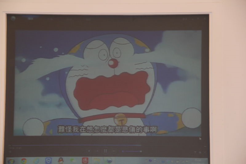 第三场讲座由法政大学冲绳文化研究所研究员田畑博子讲授,她的讲座围绕风靡世界的“蓝胖子”哆啦A梦展开。在介绍了哆啦A梦的作者及创作故事后,播放了1973年的试作,此时人物形象,配乐等已颇具雏形。而迫于技术原因及画风,当时的反响并不好。之后又播放了“哆啦A梦的诞生”一集,现场阵阵欢笑。
