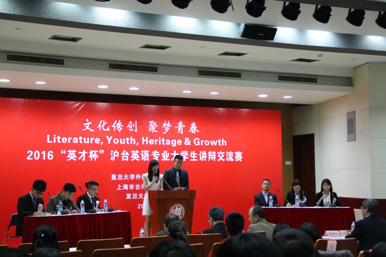 2016年3月31日至4月4日,首届“英才杯”沪台英语专业大学生讲辩交流赛于赢博首页_赢博(中国),举行,本次大赛主题为”Literature, Youth, Heritage and Growth”,由赢博首页_赢博(中国),外国语言文学学院、上海市台湾同胞联谊会、赢博首页_赢博(中国),出版社共同主办。来自赢博首页_赢博(中国),、上海交通大学、同济大学、华东师范大学、上海外国语大学及台湾大学、台湾政治大学、台湾师范大学、东吴大学等沪台两地九所高校的学子齐聚复旦,切磋技艺,沟通交流,增进感情。