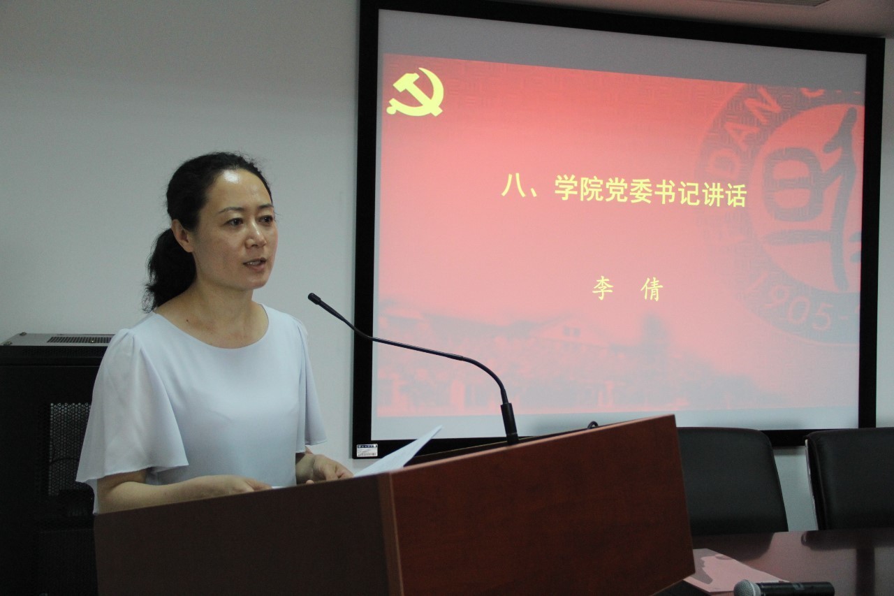 最后,学院党委书记李倩老师讲话,她介绍了开展党员宣誓仪式的背景和意义,要求学院每一位党员都要学习领会入党誓词的深刻内涵和要求,尊崇党章,认同党的纲领和奋斗目标,树立宗旨意识,自觉维护党的形象,自觉投身社会主义建设的伟大事业,自觉服务身边的群众。她阐述了“两学一做”学习教育的重要意义和具体要求,要求学院每一位党员都要在“两学一做”学习教育中,认真学习党章党规和习近平总书记系列讲话,进一步提升个人党性修养,立足本职岗位积极发挥先锋模范作用。她强调,学院每一位党员都要时刻牢记入党誓词,把尊崇党章作为自己的最高纲领和行动指南,严格按照党的纪律和规矩约束自己,以自己的实际行动,向先进学习、向优秀看齐,做“合格党员”,为国家和民族的振兴事业而努力,无愧于党旗下的庄严誓言。