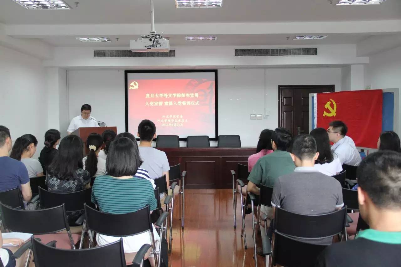 2016年6月21日下午,在庆祝建党95周年之际,为推动“两学一做”学习教育深入开展,外文学院党委于文科楼510会议室举行简朴而庄重的师生党员入党宣誓暨重温入党誓词仪式。学院党委负责人、教工党支部和教工党员代表、学生党总支委员、学生党支部和学生党员代表参加仪式,学院党委副书记赵昕主持仪式。