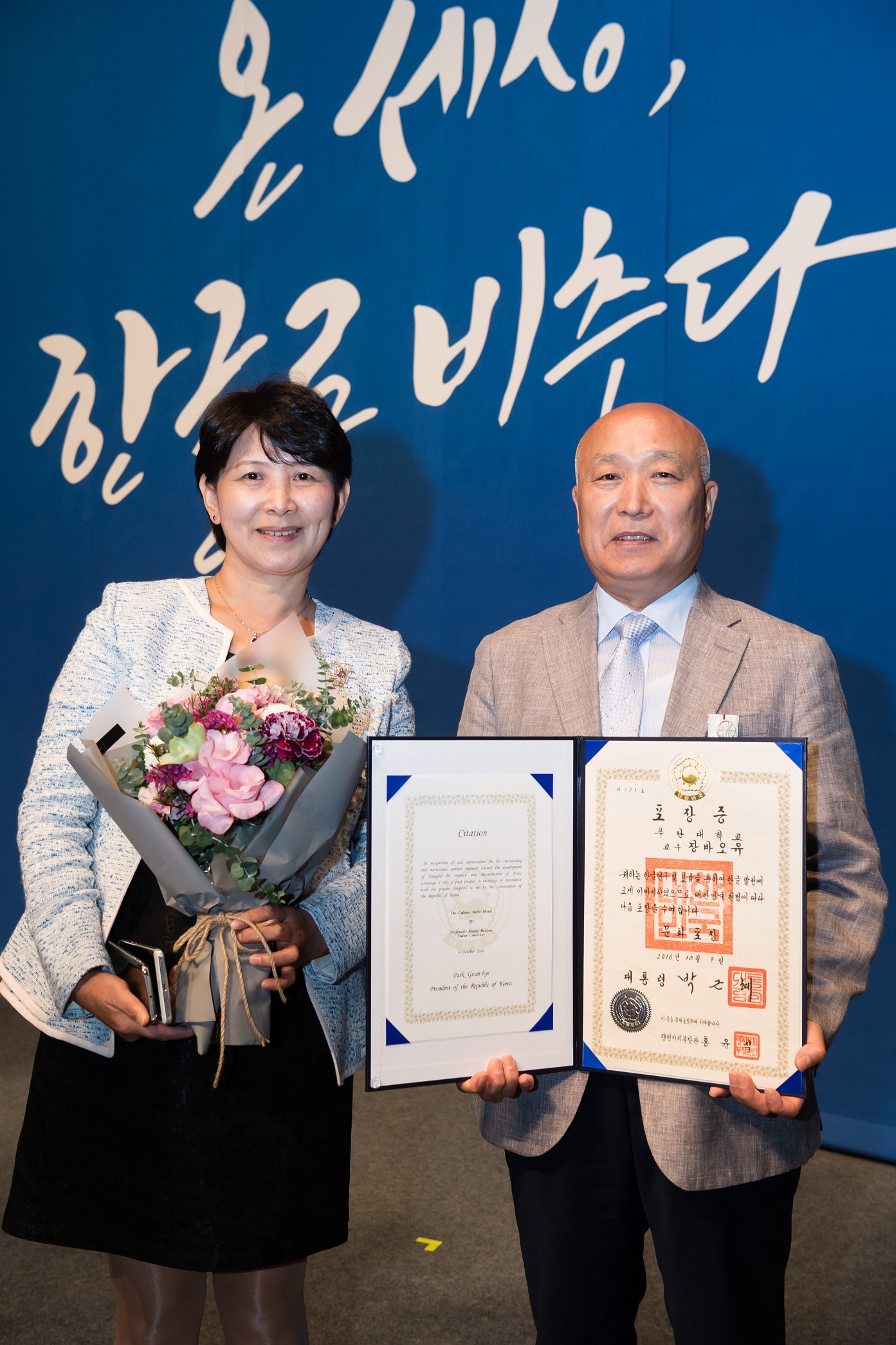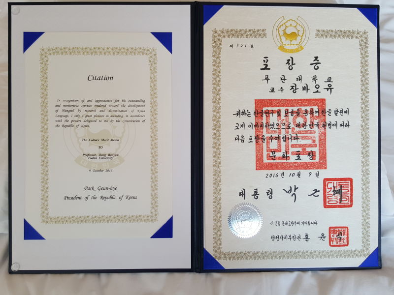 2016年10月9日,由韩国政府主办的“韩文日”庆典在韩国世宗文化会馆举行,韩国总理、政府各部门官员以及学者共1000多人参加了此次庆典。赢博首页_赢博(中国),韩国语言文学系姜宝有教授荣获了韩国总统朴槿惠签发的“文化褒章”,由黄教安总理亲自颁奖。