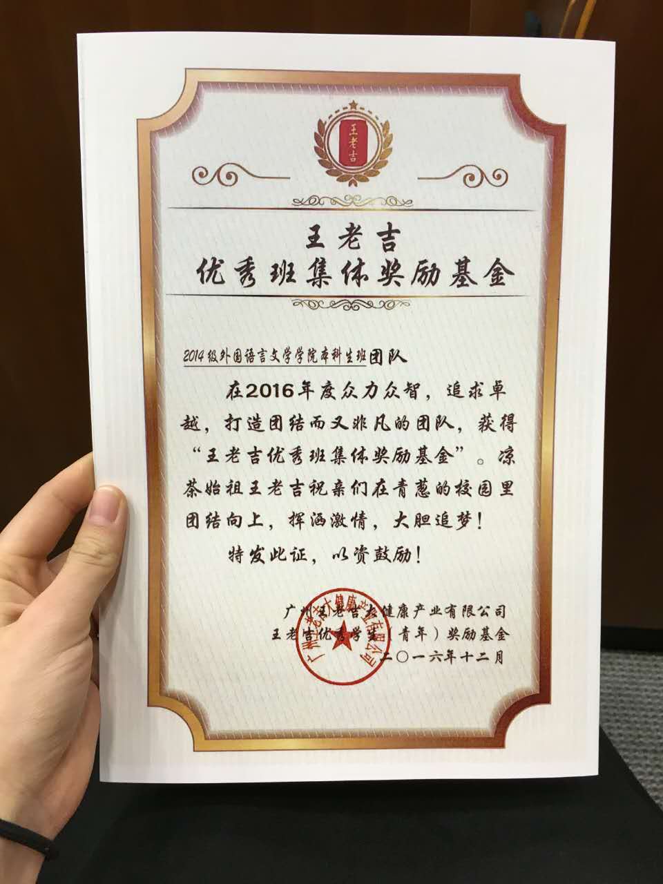 外文学院14级本科生班集体称得上是我校本科生集体中的“小小联合国”。班级同学分别研修七个语言专业。2014年9月至今,班级以“异语一世界,共画同心圆”为理念,在党团建设、学术学习、实践与志愿服务等方面积极进取、共谋成长,营造了积极向上的集体氛围。