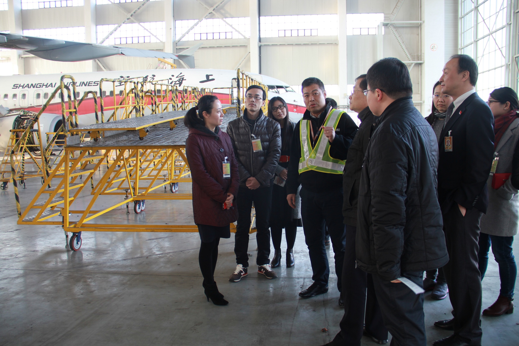 双方党员还一起参观了虹桥国际机场的机库和东航贵宾室。
