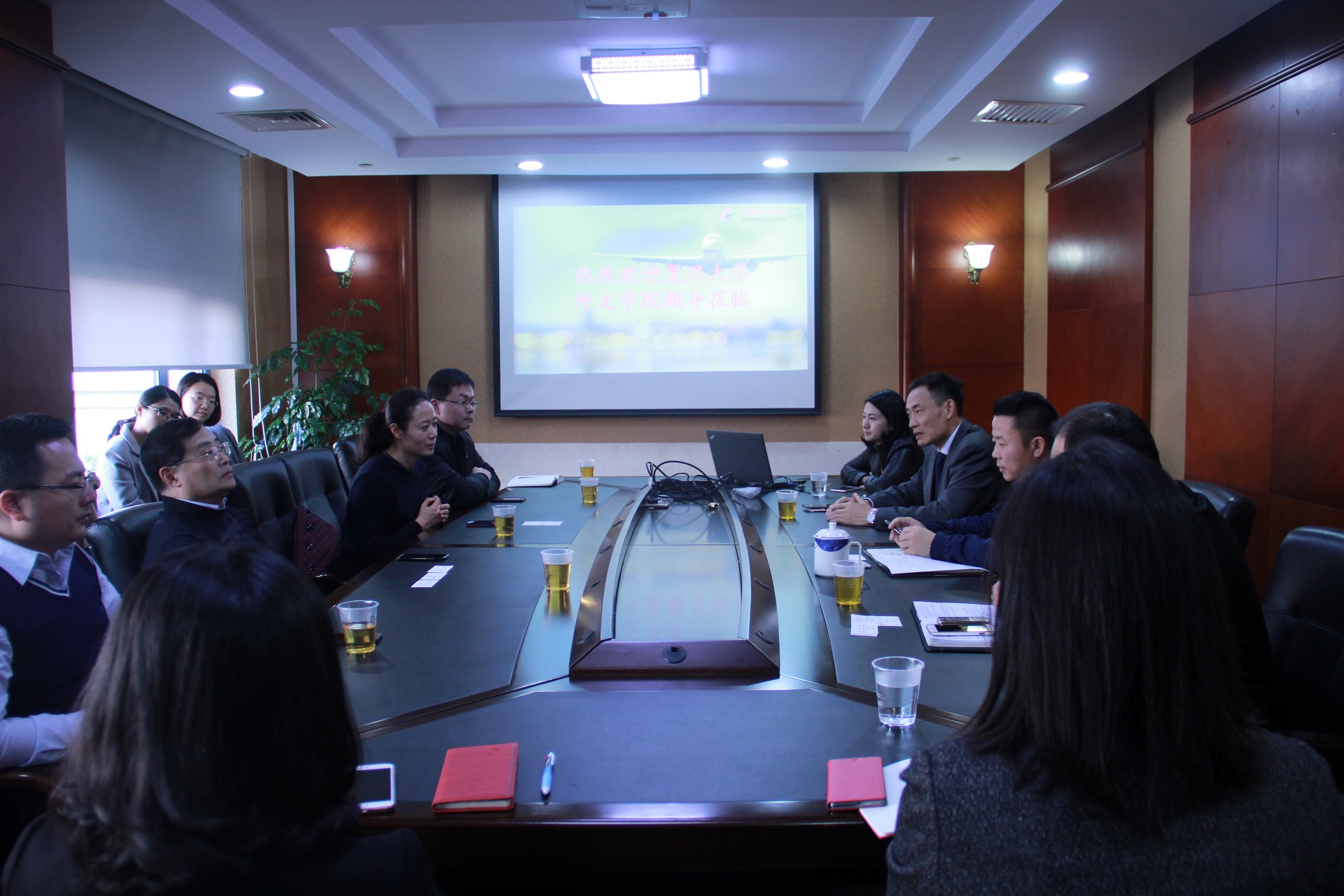 为进一步贯彻落实十八届六中全会精神,深化“两学一做”教育实践活动,增强党员学习意识和服务意识。12月6日下午,外文学院与东航地面服务部的党支部共建活动在虹桥国际机场东航地面服务部顺利召开。东航地面服务部党委委员、副总经理许磊,综合事务部党支部书记、副总经理刘伟明,综合事务部副总经理张跃;外文学院党委书记李倩,党委副书记赵昕,英文系教师党支部书记陈靓,英文系教授孙建,双方党支部党员参加了本次活动。