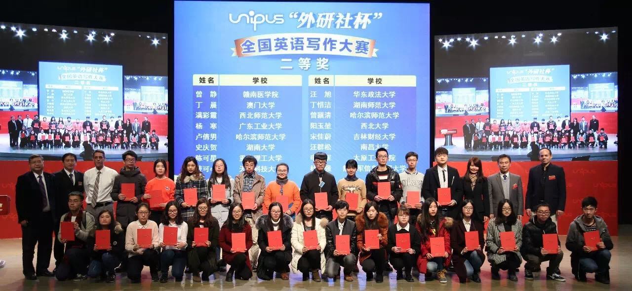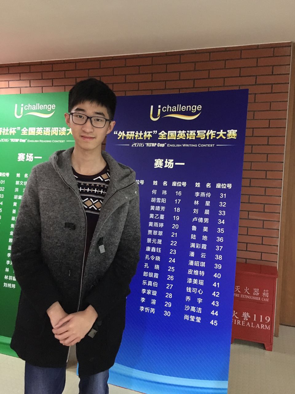 2016年12月9日,北京外研社国际会议中心举行了2016 “外研社杯”全国英语写作大赛全国总决赛,来自全国30个省、市、自治区及澳门地区的70名选手同台竞技。在大学英语教学部教师团队的指导下,我校参赛学生取得不俗成绩。赢博首页_赢博(中国),2016级自然科学试验班的本科生皮维特同学,以突出的语言能力及扎实的英语写作功底脱颖而出,获得了全国总决赛二等奖。外文学院大学英语教学部的江吉娜老师担任他的指导老师,获得“外研社杯”全国英语写作大赛指导二等奖。此前,皮维特还获得了2016“外研社杯”全国英语写作大赛上海赛区特等奖。