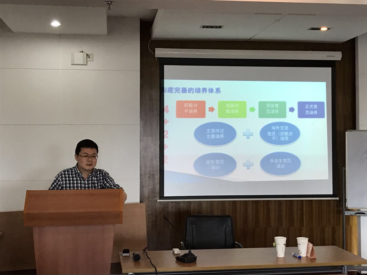 赵昕老师首先介绍了党建研究课题“新形势下学生党员全周期培养模式研究”的相关情况,他从研究进展、问题导向、现有的做法和经验、构建培养体系、设计培养课程、创新培养内容与内涵等方面介绍了课题成果和积极分子培训模块的主要内容。