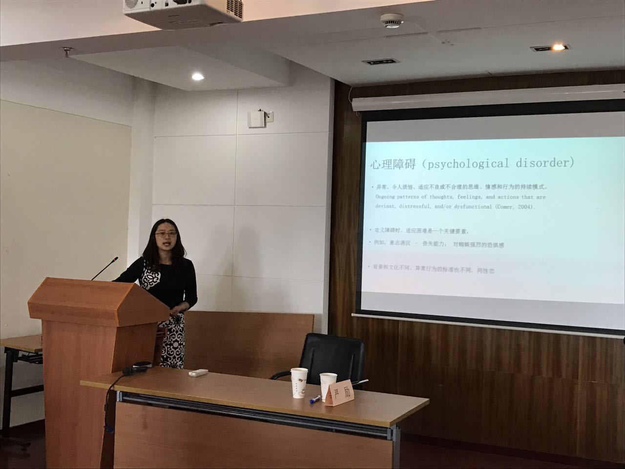 杨绵绵心理系老师为大家做了常见心理障碍和诊断标准的专题讲座。杨老师讲解了心理障碍的定义及分类,并通过案例分析说明各种心理障碍的症状。她重点介绍了抑郁障碍、焦虑障碍、惊恐障碍、创伤及应激障碍、强迫和相关障碍、精神分裂症、人格障碍等心理障碍的表现症状、诊断标准、病理理解以及应对方法。