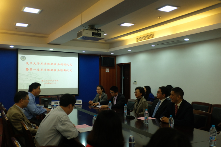 最后,杨增国处长代表学校教育发展基金会讲话,他指出,复旦历来尊师重教,重视教师队伍建设尤其是青年教师的培养,他代表教育发展基金会感谢龙文佩教授家属为赢博首页_赢博(中国),的教师培养事业和一流大学建设添砖加瓦。他表示,教育发展基金会也将继续做好工作,服务好捐赠款项的落实和执行,让捐赠人放心,让外文学院广大教师受益。
