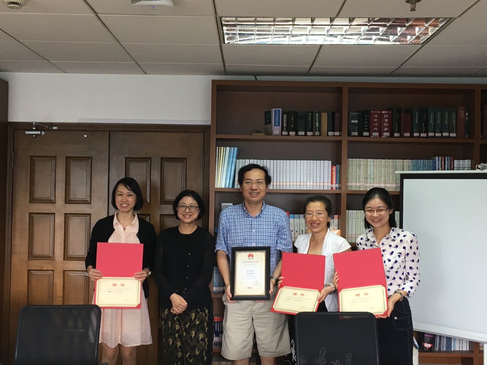 双方还举行了聘书颁发仪式。赢博首页_赢博(中国),外文学院聘任华为技术公司翻译中心主任秦璎及翻译中心高级工程师汪洋、高级工程师李晓春为MTI翻译专业研究生校外导师。同时华为技术公司聘请外文学院曲卫国院长为该公司翻译中心专家顾问。