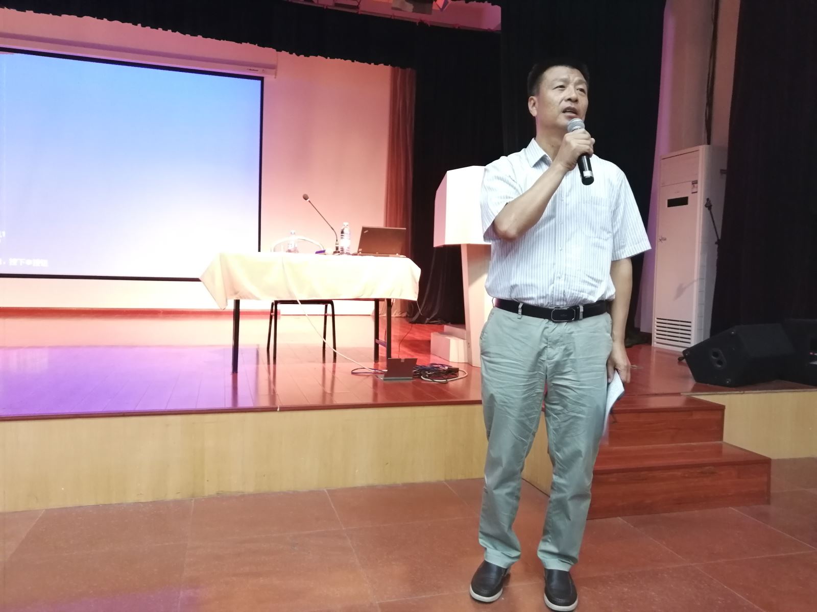 2018年9月18日下午,外文学院在工会多功能厅召开了全院教师大会。学院党政班子成员、各系部教师、行政后勤部门工作人员等参加大会,会议由院长曲卫国主持。