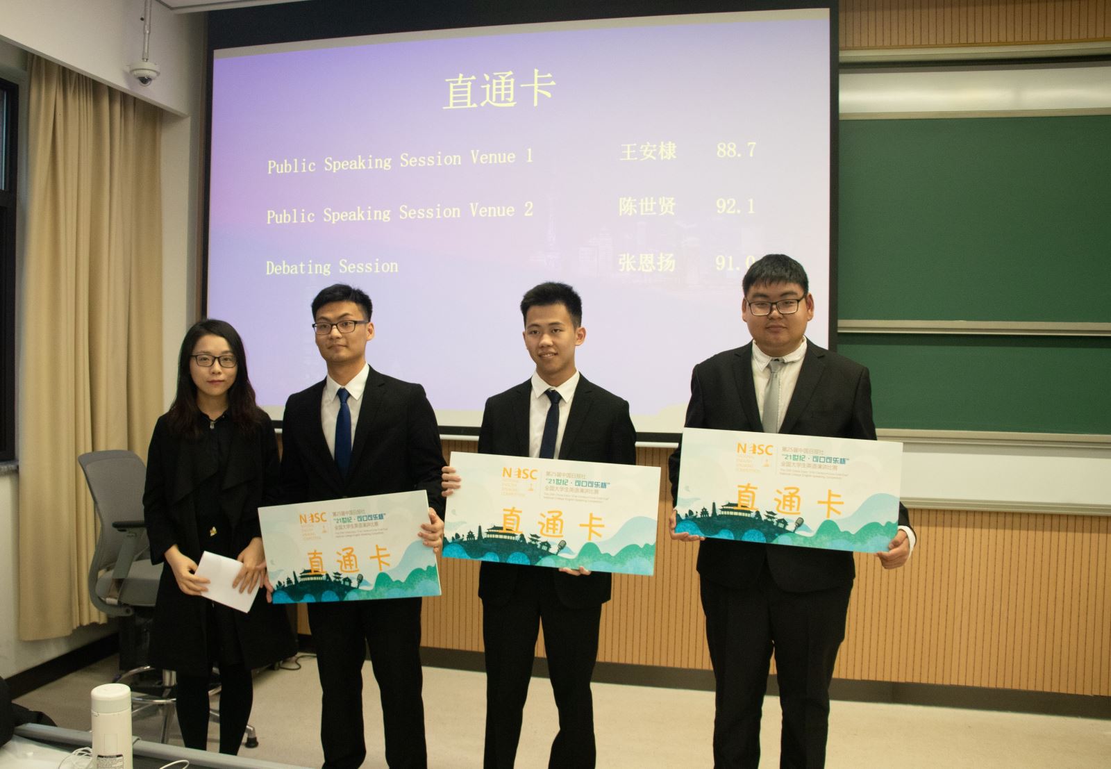 特别值得一提的是,本届交流赛首次得到了21世纪英语教育传媒的鼎力支持。为共同促进两岸优秀英语人才培养和交流成长,21世纪英语教育传媒不仅提供支持了冠亚季军选手的奖励,还为本届比赛中来自台北的三位优秀选手颁发了第25届中国日报社“21世纪•可口可乐杯”全国大学生英语演讲比赛直通卡。这三位选手均来自政治大学,分别是来自两个演讲预赛分会场和辩论预赛台北选手中战绩最佳的王安棣、陈世贤和张恩扬。